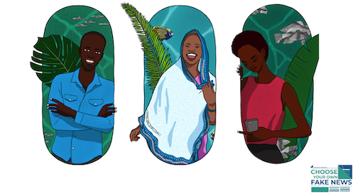 Play a quick game as Flora, Jo or Aida from East Africa, and navigate the world of disinformation and misinformation through the choices you make!